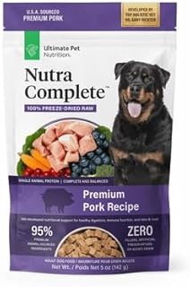 ULTIMATE PET NUTRITION Nutra Complete Freeze Dried Raw Dog Food, Veterinarian Formulated with Antioxidants, Prebiotics & Amino Acids (5 Ounce, Pork)